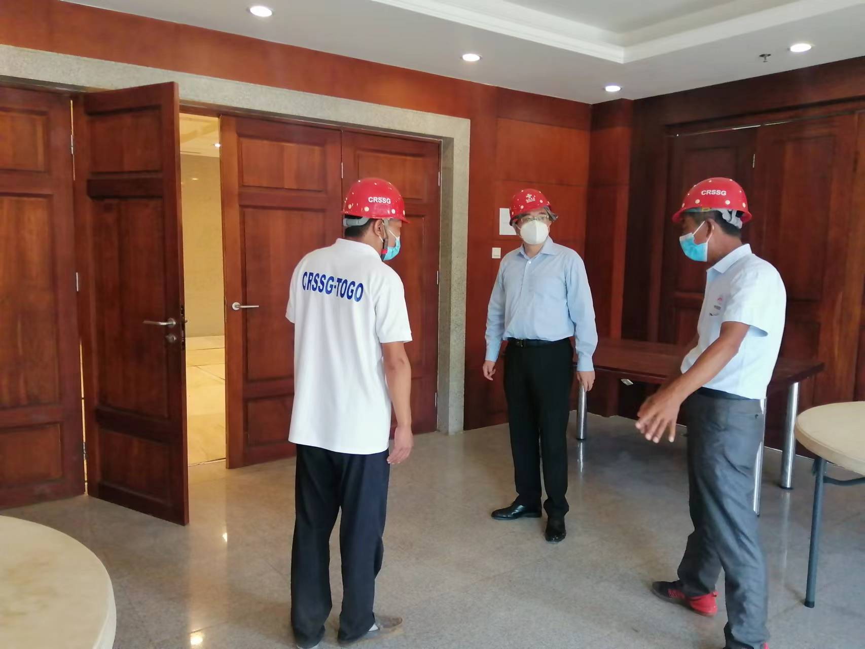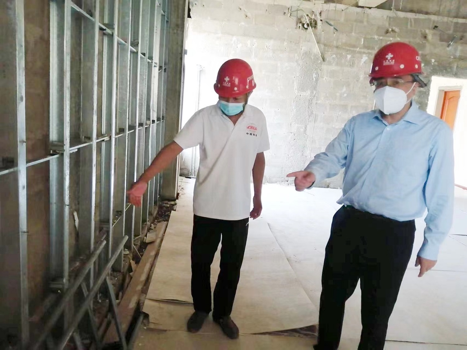 2022年8月12日,驻多哥大使巢卫东对援多哥总统府维修扩建项目进行巡视,听取中方施工单位对项目进展情况的介绍。